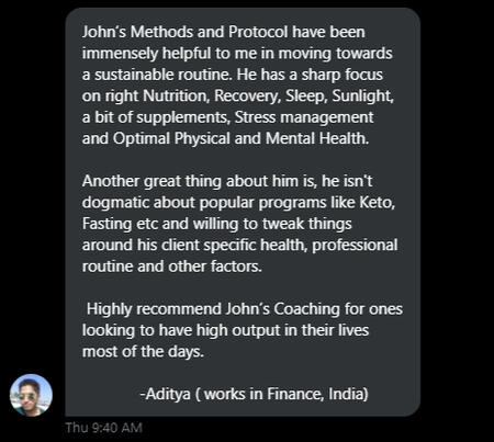 Take medicine every day for the rest of my life or try to get better another way.I decided to try another way, as the medicine was simply not an acceptable way of life for me to live out the rest of my days with.Fast forward to now, so many years later...Every day I help people like those in the video below, like you, like myself, bulletproof their health.Lowering their stress to levels they haven't seen since childhood.Using step-by-step systems that WORK, that I've designed over all my years of trial and error.Teaching doctors how to use supplementation to help THEIR patients.
